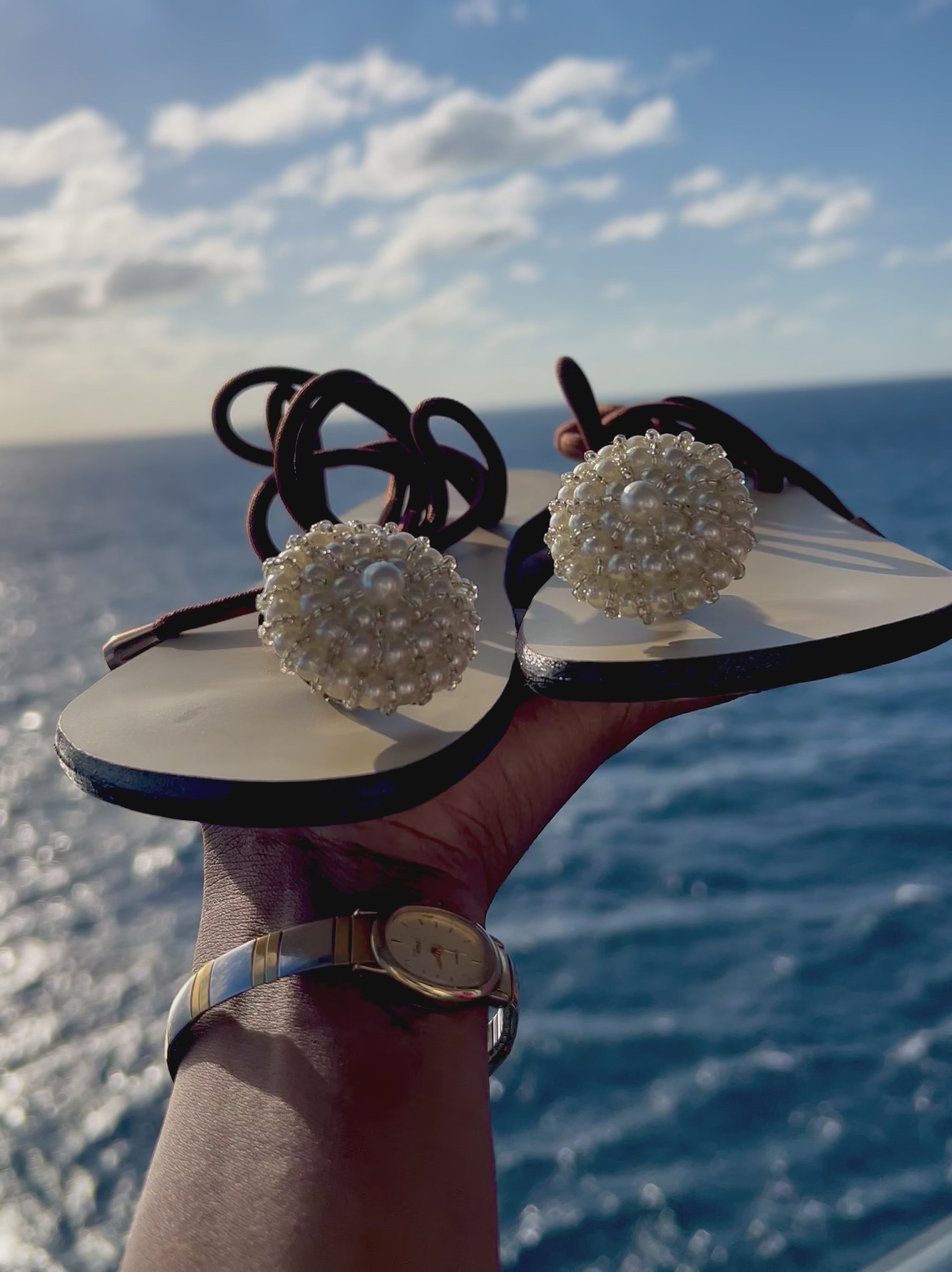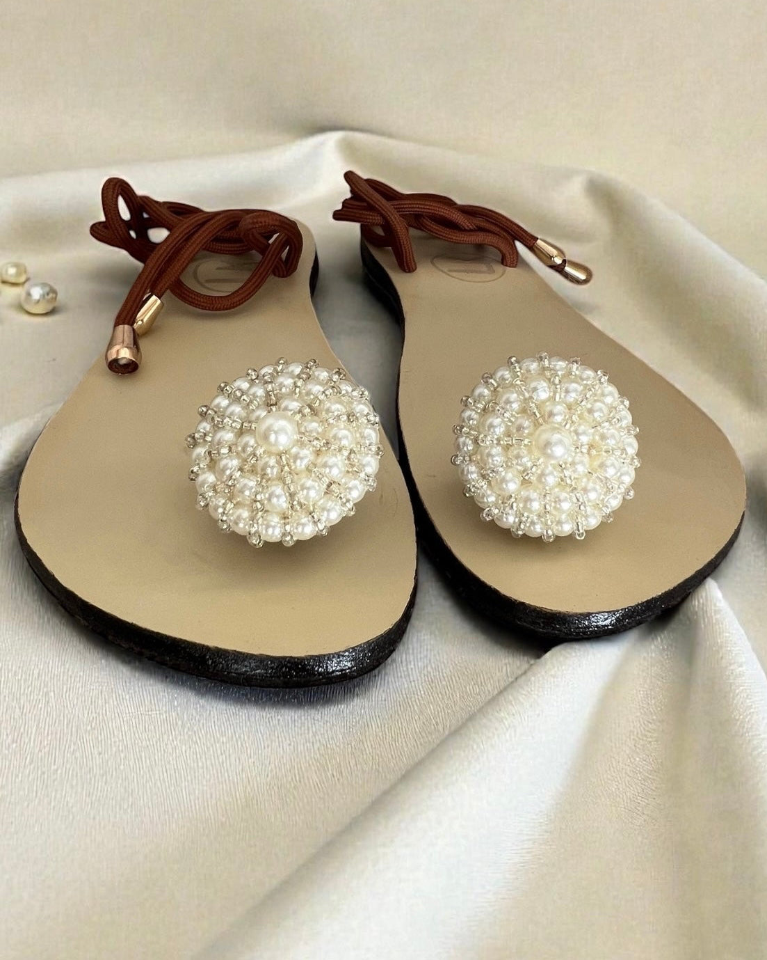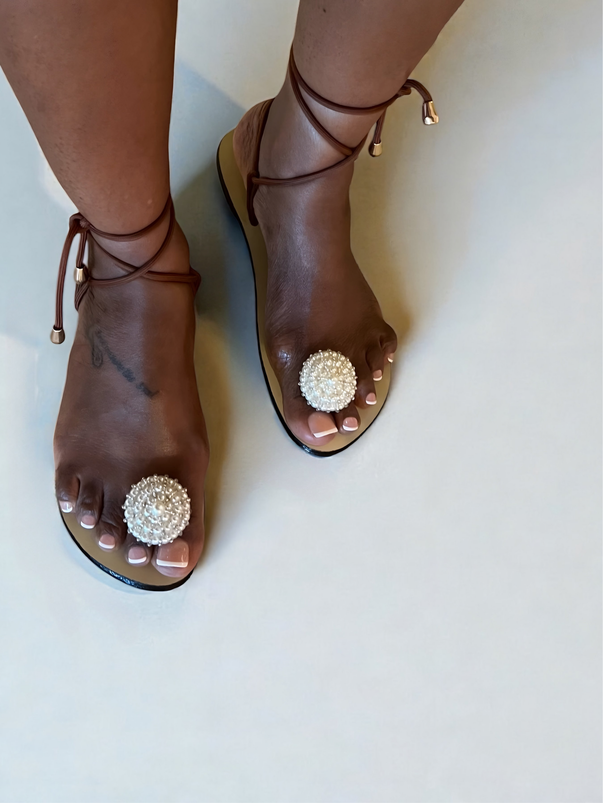 The delicate ankle ties offer a secure, adjustable fit, while the minimalist silhouette allows the pearl detail to shine. Whether styled for a sun-washed getaway or an elevated evening look, Pearl Sirène moves effortlessly from day to night.